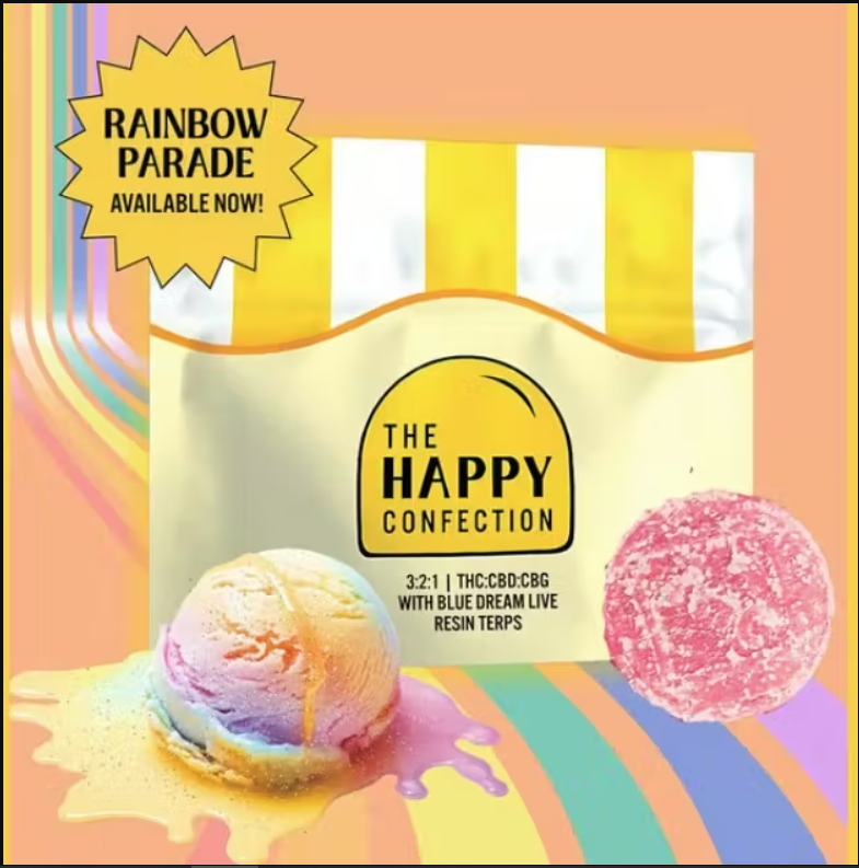 The combination of uplifting terpenes, balanced cannabinoids, vibrant flavors, and a glitter finish makes Rainbow Parade a truly joyful edible.